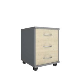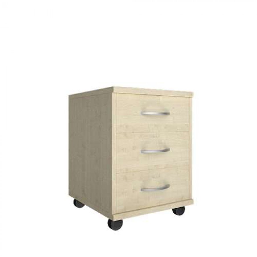 Тумба подкатная А.ТМ-3 представляет собой сборную корпусную конструкцию из мебельных щитов, изготовленных из плиты древесностружечной, облицованной пленками на основе термореактивных полимеров, класс эмиссии формальдегида Е1 по ГОСТ Р 52078-2003 (ЛДСП), и облагороженного ДВП. Торцы деталей из ЛДСП облицованы кромкой ПВХ 2-0,4 мм.